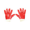 - Red PVC fully coated gloves with 190 g/m² cotton stockinette liner.