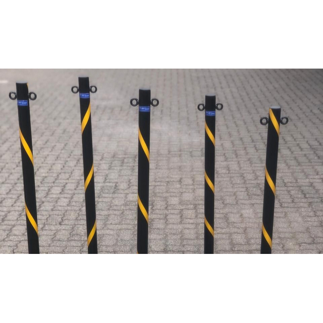 - The chain-link post is an economical and effective queueing solution.